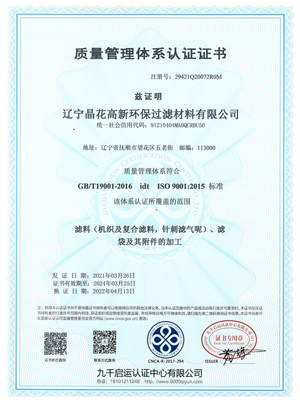 您好,歡迎來到遼寧晶花高新環保過濾材料有限公司,我們為您提供各類針刺氈濾布及除塵濾袋產品及服務。